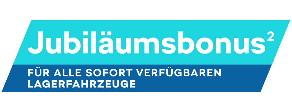 ² Der Jubiläumsbonus ist modellabhängig und besteht aus einem Herstelleranteil sowie unserem zusätzlich gewährten Händlernachlass. Gilt für Privatkunden bei Abschluss eines Kauf-, Leasing- oder Finanzierungsvertrags für sofort verfügbare Lagerfahrzeuge bis